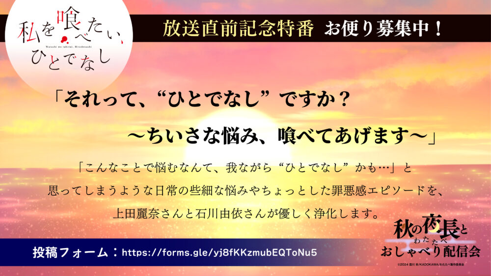 <お便り募集フォーム>https://forms.gle/yj8fKKzmubEQToNu5