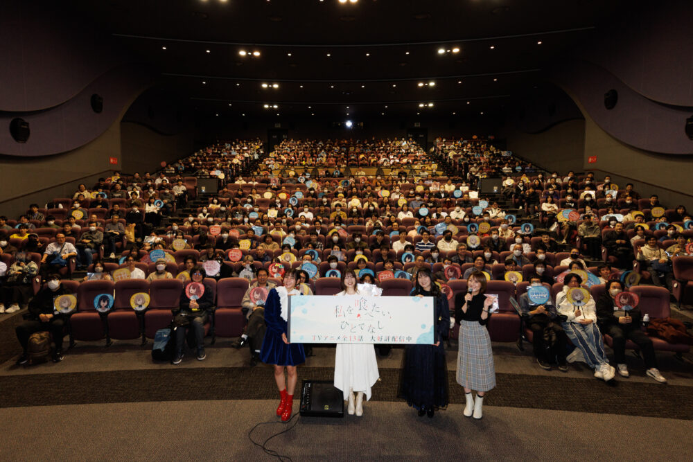 2025年12月25日深夜より、TOKYO MXほかにて最終話が放送されたアニメ『私を喰べたい、ひとでなし』。テレビシリーズの全13話放送を記念して、大スクリーンで第11〜13話が上映されるイベントが同年12月28日、ユナイテッド・シネマお台場にて行われました。