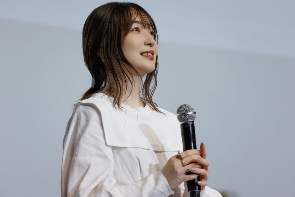オリジナルの「リリィ」を歌った上田さんは「予想以上に爽やかで、希望を感じる楽曲」と振り返りつつ、「第13話まで観ると、この曲以外あり得なかったと思います。あの曲の歌詞は、第1話からちょっとだけ先の比名子について描かれていたんですね」と最終話まで放送された今だからこそ感じたことにも触れる場面も。この日上映されたエンドロールで使用された「リリィ[Special Ver.]」についても、「バッチリ歌詞がハマっていて……」と石川さんと視線を合わせながら語りました。