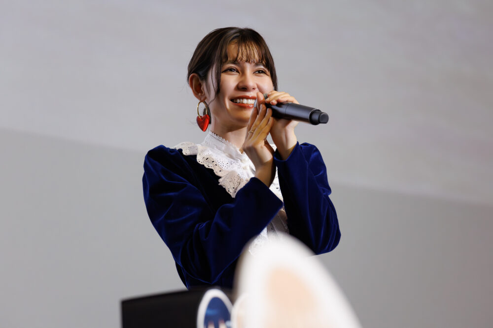 そんなアニメ『わたたべ』の特徴の一つに、メインキャラクター三人がそれぞれ歌ったエンディング主題歌が存在することが挙げられます。第4話エンディング主題歌の「太陽、なってあげよっか?♡」についてファイルーズさんが観客へ「度肝を抜かれた人〜!」と問うと、かなり多くの挙手が。「『わたたべ』本編のシリアスな展開とギャップがあって、とても楽しくレコーディングできました」と笑み混じりに語りました。